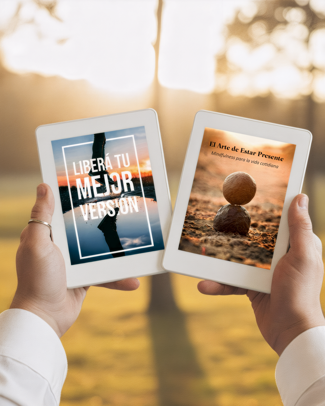 Ofrecemos libros digitales sobre crecimiento personal, desarrollo interior, hábitos conscientes y transformación emocional. Están pensados para ayudarte a vivir con más claridad, calma y poder personal.